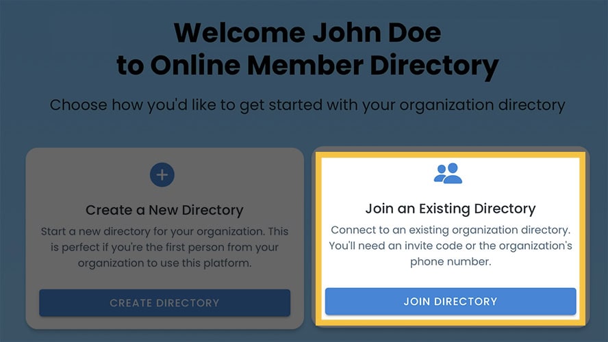 Next, you will be given the option to create a new directory or join an existing Directory. Click Join Directory.