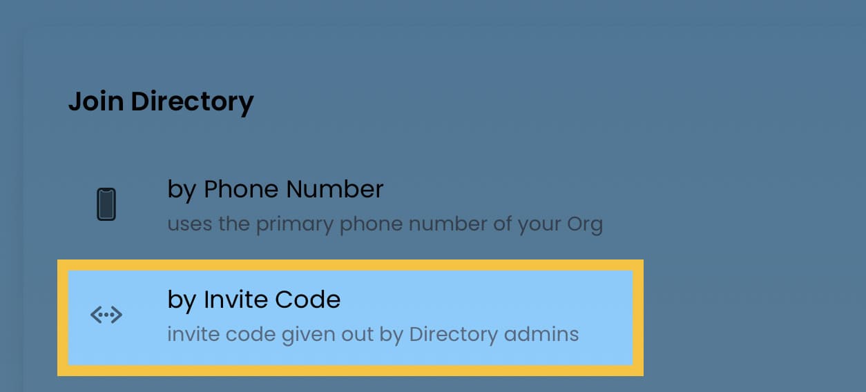 Click by Invite Code. Enter the code provided by your organization’s admin.